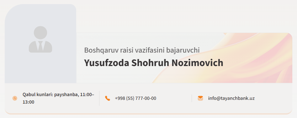 Ma’lumot uchun, Tayanch mikromoliya banki O‘zbekistondagi birinchi va ayni paytda yagona mikromoliya banki hisoblanadi.